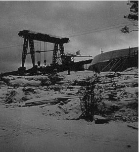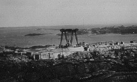 A close-up of the big crane. On the right is the base on one of the gun towers. Most of the coastal defenses structures in Norway where actually built by Russian POW's, I believe that was the case with "Vara" too. |