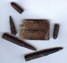 mm bullets, 7.62 mm rifle bullets, POW dog tag with number 9717/346 punched