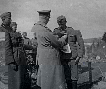 This gefreiter receive a Iron cross 2.class. This is probably a very special occasion, since a higher rank officer is handing out the awards. |