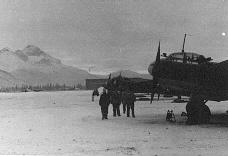 Way north in Norway, at Bardufoss, these two Ju-88's are lined up, ready for take-off. (From KG 30) |