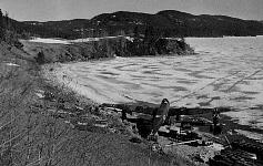 landing on a frozen lake.